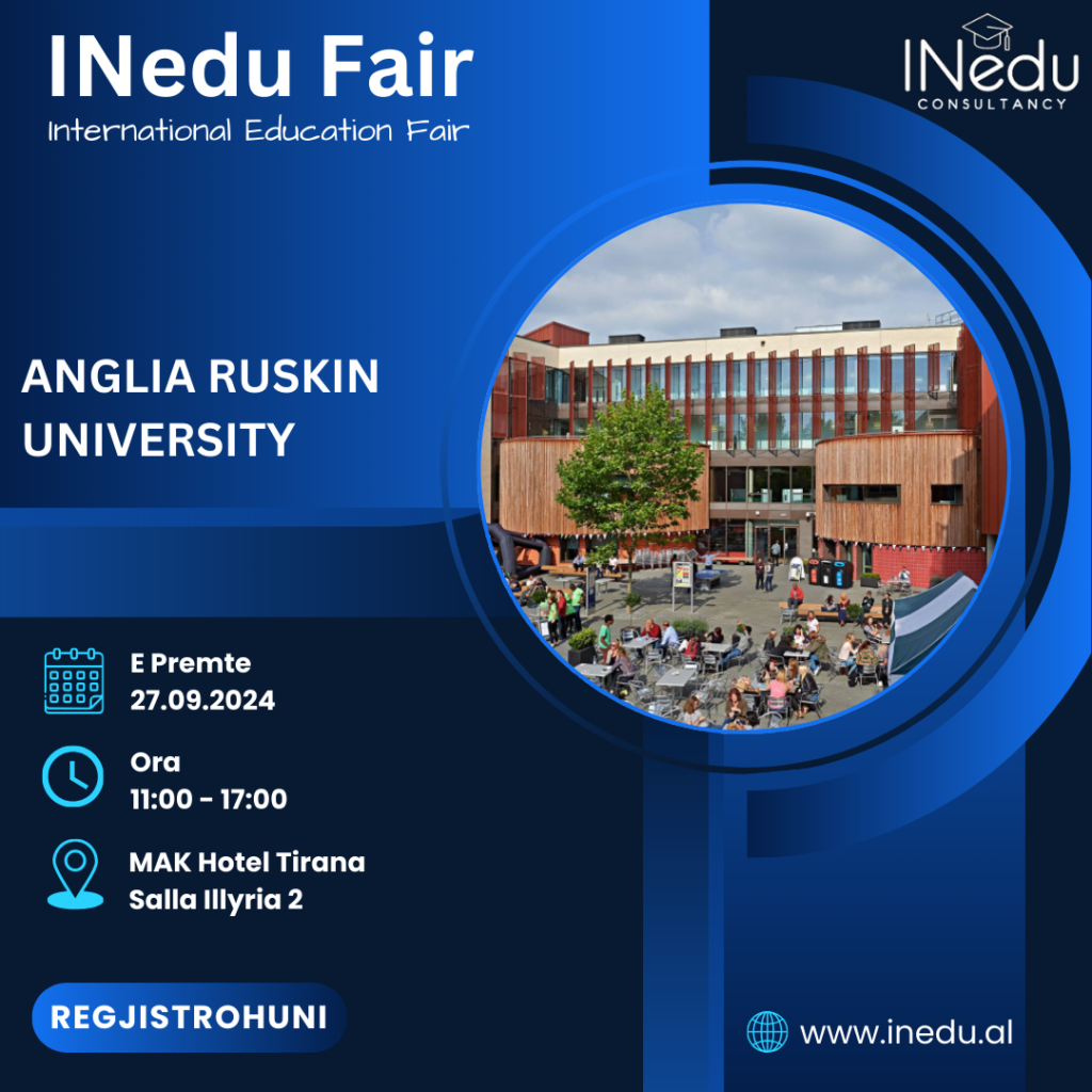 Anglia Ruskin renditet nder 39-të universitetet më të mirë në Mbreterine e Bashkuar dhe i 30-ti në degen e Ligjit. Universiteti daton qe prej vitit 1858, me themelimin e insitutit te arteve ne Cambridge. Instituti mori zhvillim te shpejt duke perfshire edhe departamente te tjera ne fusha te ndryshme, per tu bere sot Anglia Ruskin University, i njohur si ARU. Sot Universiteit ndodhet ne zemer te qytetit te Cambridge dhe perbehet nga nje kampus unik modern. Pevec kampusit ne Cambridge, universiteti perbehet edhe nga tre kampuse te tjetra te cilat ndodhen ne Chelmsford, London dhe Peterborough. Kampusi ne Londer eshte I njohur per ofrimin e programeve bachelor dhe master ne fushen e menaxhimit te biznesit, ligjit dhe finances. Universiteti ofron nje game te gjere programesh ne fushen e computing, technology, engineering, law, business, economics, life sciences etj. Universiteti kohët e fundit ka investuar më shumë se 122 milion paund në mjedise të ndryshme akademike dhe praktike duke përfshirë: Laboratorët e Mjekësisë Ligjore, katër dhoma bibliotekash, laboratorë të përparuar, dhoma këshillimi, një teatër, dy galeri arti, studio teatër, muzikë, film, një qender per gjuhët e huaja, laboratorë multimedialë, madje edhe një sallë gjyqi për studentet që studiojnë për drejtësi.