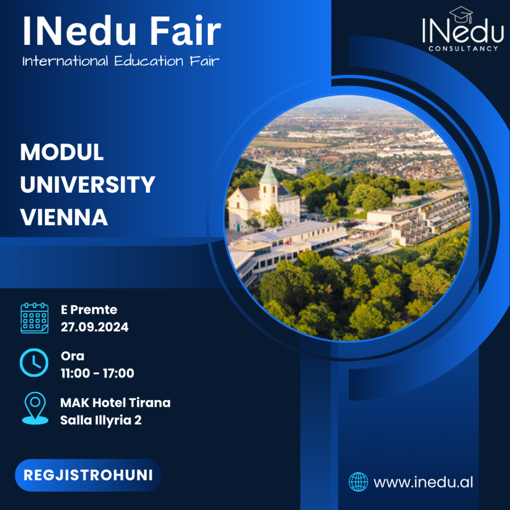 Modul University Vienna është një universitet privat i vendosur në Vjenë, Austri. Ai u themelua në vitin 2007 dhe është universiteti i parë privat i Austrisë që fokusohet ekskluzivisht në arsimin dhe kërkimin në fushat e turizmit, zhvillimit të qëndrueshëm dhe qeverisjes publike. Universiteti ofron programe universitare, pasuniversitare dhe doktorature në fusha të ndryshme, duke përfshirë International Management, Sustainable Development, New Media Technology, Tourism and Hospitality Management, Public Governance and Sustainable Development, dhe Social Sciences. Që nga viti 2021, universiteti kishte një popullsi studentore prej mbi 1,000 studentësh nga më shumë se 70 vende.Numri i studentëve për klasë është i ulët me një maksimum prej 25 studentësh për klasë, duke lejuar vëmendjen e personalizuar dhe ndërveprimin me profesorët. Normat e punësimit për të diplomuarit e universitetit janë të larta, me shumë prej tyre që gjejnë punësim në kompani dhe organizata kryesore brenda fushave të tyre. Universiteti ka një reputacion të fortë për prodhimin e të diplomuarve që janë të përgatitur mirë për karriera të suksesshme. nJeta studentore në Modul University Vienna është e gjallë, me klube dhe organizata të shumta ku studentët mund të bashkohen, si Këshilli Studentor, Komiteti Social, Klubi i Qëndrueshmërisë dhe Klubi i Sipërmarrjes. Universiteti gjithashtu organizon ngjarje sociale dhe kulturore gjatë gjithë vitit akademik, të tilla si netë filmash, turne sportive dhe udhëtime për të eksploruar trashëgiminë kulturore dhe natyrore të Austrisë. Universiteti ka ambiente moderne, duke përfshirë salla leksionesh, salla seminaresh, laboratorë kompjuterash dhe një bibliotekë me një koleksion të madh librash akademikë, revistash dhe bazash të dhënash. Ka gjithashtu objekte sportive, duke përfshirë një palestër, një fushë basketbolli dhe një fushë futbolli, si dhe mundësi akomodimi në kampus për studentët.