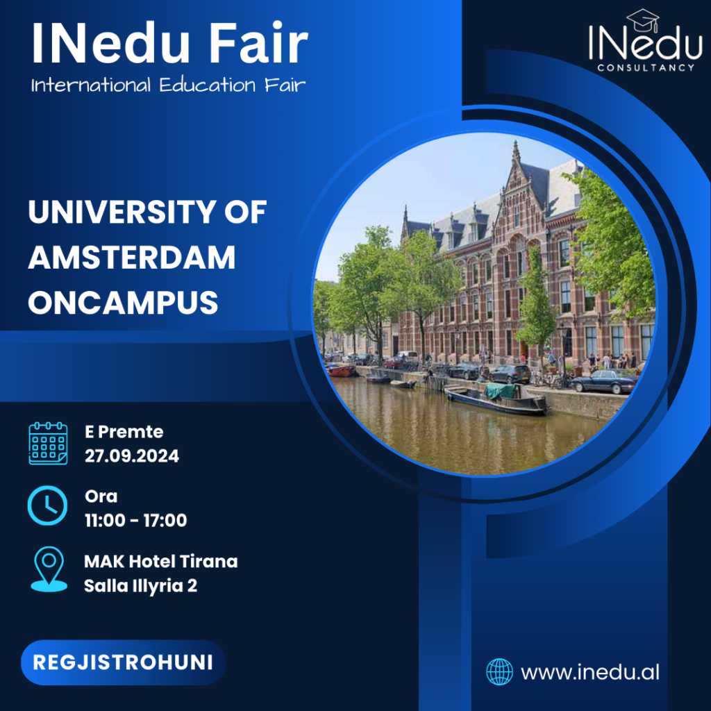 Universiteti i Amsterdamit (UVA) eshte nje nga universitetet lider per kerkimet shkencore ne Hollande. Ai eshte nje universitet modern, me nje histori te pasur, i cili ofron nje arsim te cilesise se larte ne nje mjedis frymezues. Universiteti eshte themeluar me 1632 dhe eshte aktualisht universiteti me i madh ne Hollande. Aktualisht ne te studiojne mbi 30000 studente ku rreth 20 % jane studente nderkombetare. UVA eshte anëtar i Universitas 21 dhe LERU - një rrjet universitetesh lider ne fushen kërkimore shkencore. Ai eshte renditur nder 25 universitetet me te mira ne Europe per Economics dhe Econometrics, si edhe vleresohet vazhdimisht nder 100 Universitetet me te mira ne renditjet globale ( THE Rankings, QS Rankings , Leiden Ranking). Universiteti ofron nje game te gjere programesh bachelor dhe master ne fushen e biznesit, shkencave sociale,teknologjise dhe ligit.